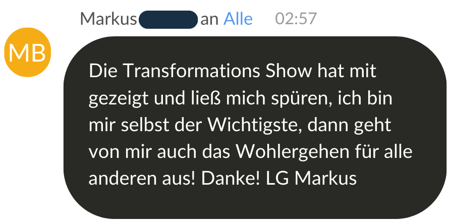 Komme am 29.03. um 19:19 Uhr über den Zugangslink zur Transformations-Show.